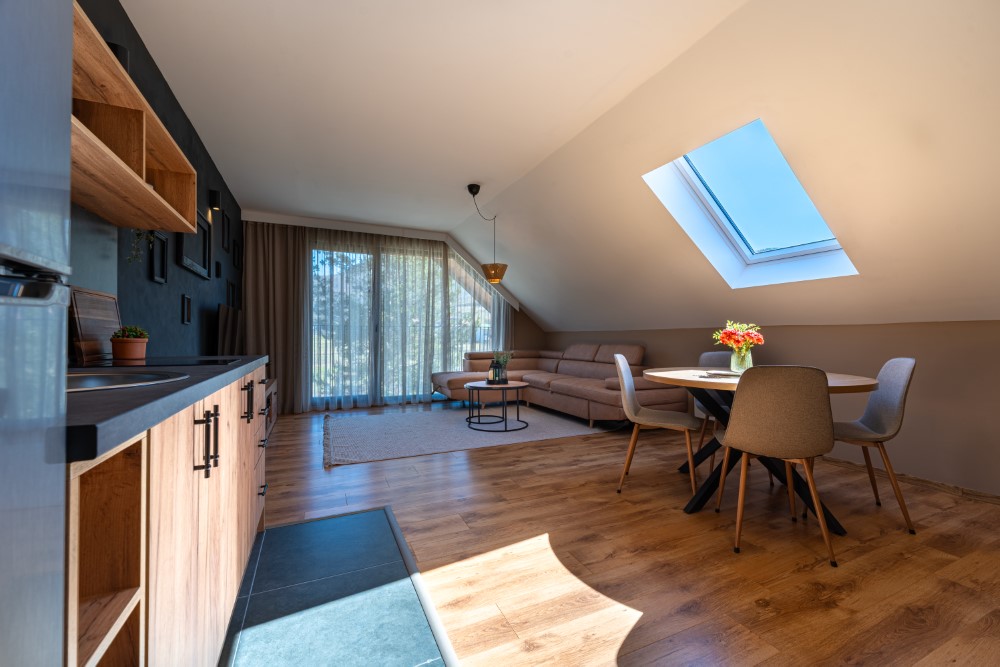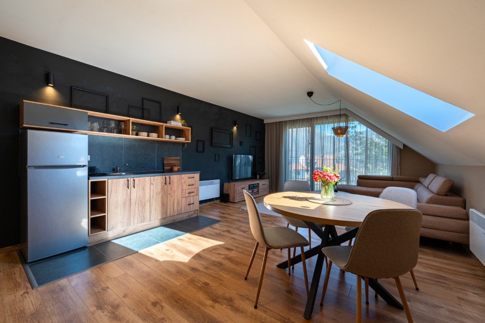stylish, open-space studios are just 9 minutes from the ski resort and 1 minute from the town center, offering the perfect balance of nature and convenience.